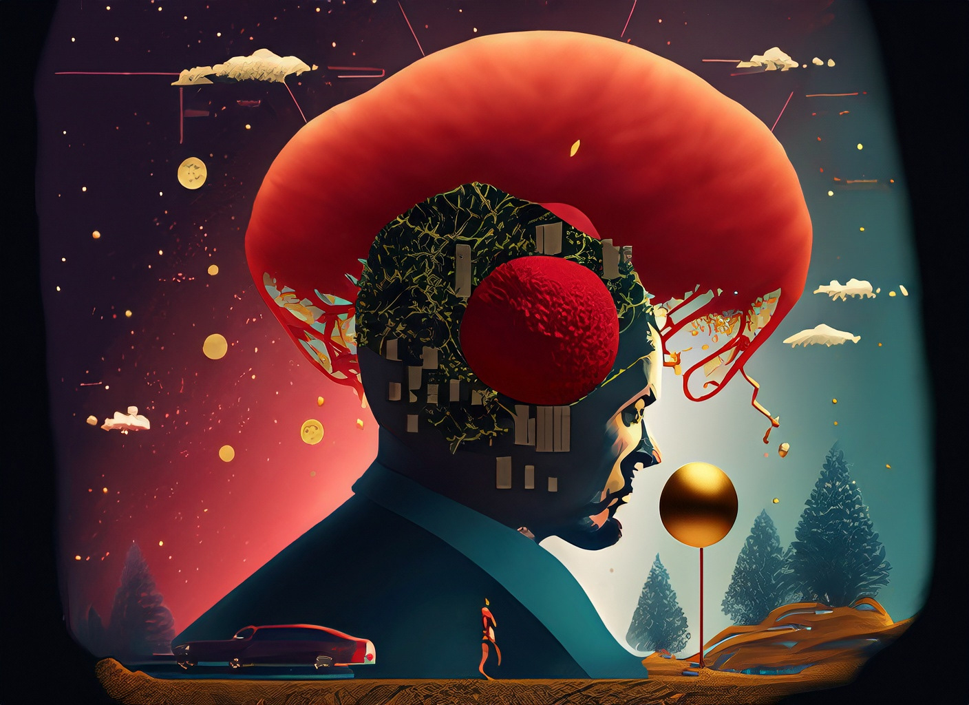 I created a series of images that i call Red Gold World. All images were created using Adobe Firefly, then treated with Photoshop, and animated with After Effects.